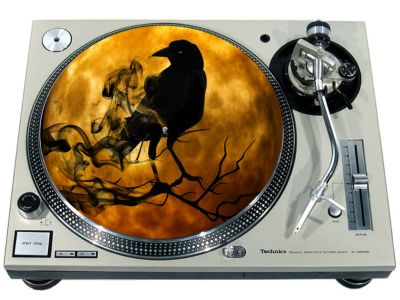 High quality felt turntable slipmat imprinted with an image of Moon Raven. The mat is regular thickness (3/32" or 2mm) and is sized to fit any 12 inch turntable. It is anti static, has a glazed bottom to grip and avoid slippage, feels great and works well for scratching or just playing your records. The image is impregnated into the surface of the mat, so it cannot scratch off or damage the record.