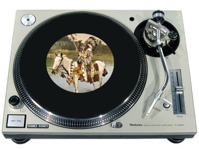 High quality felt turntable slipmat imprinted with an image of Native Indian 2. The mat is regular thickness (3/32" or 2mm) and is sized to fit any 7 inch turntable. It is anti static, has a glazed bottom to grip and avoid slippage, feels great and works well for scratching or just playing your records. The image is impregnated into the surface of the mat, so it cannot scratch off or damage the record.