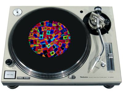 High quality felt turntable slipmat imprinted with an image of Neon Blocks. The mat is regular thickness (3/32" or 2mm) and is sized to fit any 7 inch turntable. It is anti static, has a glazed bottom to grip and avoid slippage, feels great and works well for scratching or just playing your records. The image is impregnated into the surface of the mat, so it cannot scratch off or damage the record.