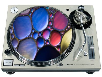 High quality felt turntable slipmat imprinted with an image of Oil In Water. The mat is regular thickness (3/32" or 2mm) and is sized to fit any 12 inch turntable. It is anti static, has a glazed bottom to grip and avoid slippage, feels great and works well for scratching or just playing your records. The image is impregnated into the surface of the mat, so it cannot scratch off or damage the record.