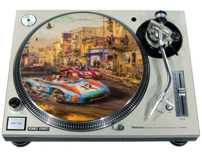 High quality felt turntable slipmat imprinted with an image of Old Time Race 1. The mat is regular thickness (3/32" or 2mm) and is sized to fit any 12 inch turntable. It is anti static, has a glazed bottom to grip and avoid slippage, feels great and works well for scratching or just playing your records. The image is impregnated into the surface of the mat, so it cannot scratch off or damage the record.