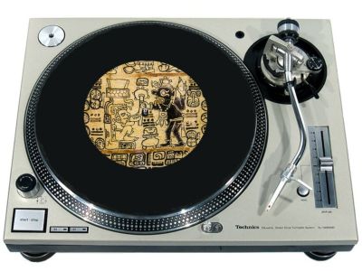 High quality felt turntable slipmat imprinted with an image of Aztec 1. The mat is regular thickness (3/32" or 2mm) and is sized to fit any 7 inch turntable. It is anti static, has a glazed bottom to grip and avoid slippage, feels great and works well for scratching or just playing your records. The image is impregnated into the surface of the mat, so it cannot scratch off or damage the record.