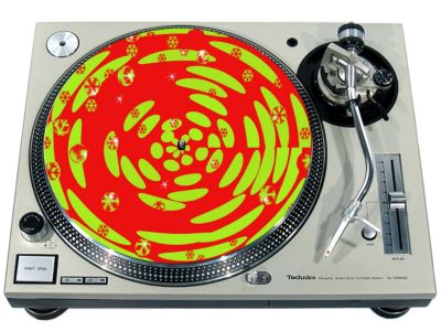 High quality felt turntable slipmat imprinted with an image of Orange and Lime Psycho. The mat is regular thickness (3/32" or 2mm) and is sized to fit any 12 inch turntable. It is anti static, has a glazed bottom to grip and avoid slippage, feels great and works well for scratching or just playing your records. The image is impregnated into the surface of the mat, so it cannot scratch off or damage the record.