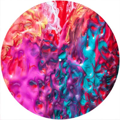 High quality felt turntable slipmat imprinted with an image of Paint Mix 2. The mat is regular thickness (3/32" or 2mm) and is sized to fit any 12 inch turntable. It is anti static, has a glazed bottom to grip and avoid slippage, feels great and works well for scratching or just playing your records. The image is impregnated into the surface of the mat, so it cannot scratch off or damage the record.