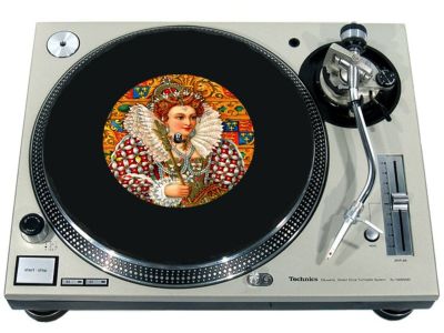 High quality felt turntable slipmat imprinted with an image of Painted Queen. The mat is regular thickness (3/32" or 2mm) and is sized to fit any 7 inch turntable. It is anti static, has a glazed bottom to grip and avoid slippage, feels great and works well for scratching or just playing your records. The image is impregnated into the surface of the mat, so it cannot scratch off or damage the record.