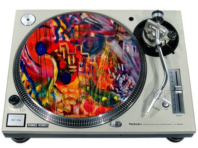 High quality felt turntable slipmat imprinted with an image of Painting 8. The mat is regular thickness (3/32" or 2mm) and is sized to fit any 12 inch turntable. It is anti static, has a glazed bottom to grip and avoid slippage, feels great and works well for scratching or just playing your records. The image is impregnated into the surface of the mat, so it cannot scratch off or damage the record.