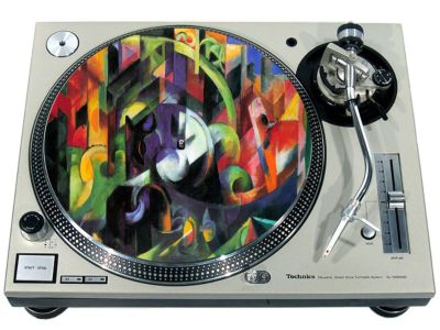 High quality felt turntable slipmat imprinted with an image of Painting 10. The mat is regular thickness (3/32" or 2mm) and is sized to fit any 12 inch turntable. It is anti static, has a glazed bottom to grip and avoid slippage, feels great and works well for scratching or just playing your records. The image is impregnated into the surface of the mat, so it cannot scratch off or damage the record.