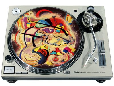 High quality felt turntable slipmat imprinted with an image of Painting 11. The mat is regular thickness (3/32" or 2mm) and is sized to fit any 12 inch turntable. It is anti static, has a glazed bottom to grip and avoid slippage, feels great and works well for scratching or just playing your records. The image is impregnated into the surface of the mat, so it cannot scratch off or damage the record.