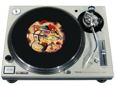 High quality felt turntable slipmat imprinted with an image of Painting 11. The mat is regular thickness (3/32" or 2mm) and is sized to fit any 7 inch turntable. It is anti static, has a glazed bottom to grip and avoid slippage, feels great and works well for scratching or just playing your records. The image is impregnated into the surface of the mat, so it cannot scratch off or damage the record.