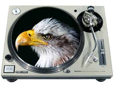High quality felt turntable slipmat imprinted with an image of Bald Eagle 1. The mat is regular thickness (3/32" or 2mm) and is sized to fit any 12 inch turntable. It is anti static, has a glazed bottom to grip and avoid slippage, feels great and works well for scratching or just playing your records. The image is impregnated into the surface of the mat, so it cannot scratch off or damage the record.