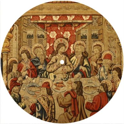 High quality felt turntable slipmat imprinted with an image of Painting Last Supper. The mat is regular thickness (3/32" or 2mm) and is sized to fit any 7 inch turntable. It is anti static, has a glazed bottom to grip and avoid slippage, feels great and works well for scratching or just playing your records. The image is impregnated into the surface of the mat, so it cannot scratch off or damage the record.