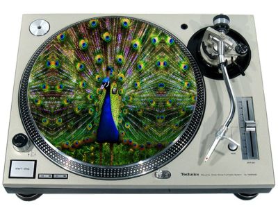 High quality felt turntable slipmat imprinted with an image of Peacock. The mat is regular thickness (3/32" or 2mm) and is sized to fit any 12 inch turntable. It is anti static, has a glazed bottom to grip and avoid slippage, feels great and works well for scratching or just playing your records. The image is impregnated into the surface of the mat, so it cannot scratch off or damage the record.