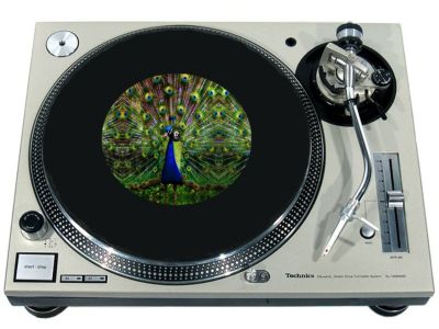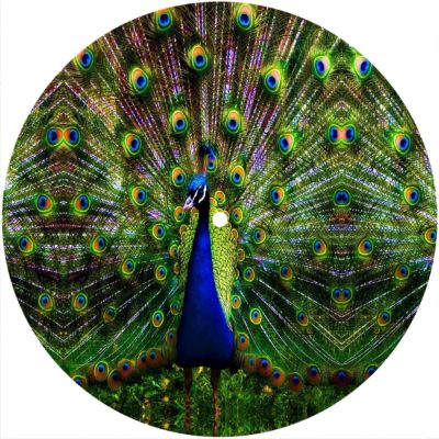 High quality felt turntable slipmat imprinted with an image of Peacock. The mat is regular thickness (3/32" or 2mm) and is sized to fit any 7 inch turntable. It is anti static, has a glazed bottom to grip and avoid slippage, feels great and works well for scratching or just playing your records. The image is impregnated into the surface of the mat, so it cannot scratch off or damage the record.