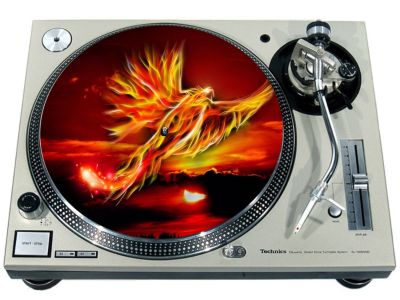 High quality felt turntable slipmat imprinted with an image of Phoenix 1. The mat is regular thickness (3/32" or 2mm) and is sized to fit any 12 inch turntable. It is anti static, has a glazed bottom to grip and avoid slippage, feels great and works well for scratching or just playing your records. The image is impregnated into the surface of the mat, so it cannot scratch off or damage the record.