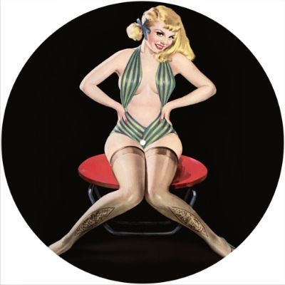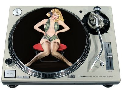 High quality felt turntable slipmat imprinted with an image of Pin Up Girl Bashfull. The mat is regular thickness (3/32" or 2mm) and is sized to fit any 12 inch turntable. It is anti static, has a glazed bottom to grip and avoid slippage, feels great and works well for scratching or just playing your records. The image is impregnated into the surface of the mat, so it cannot scratch off or damage the record.