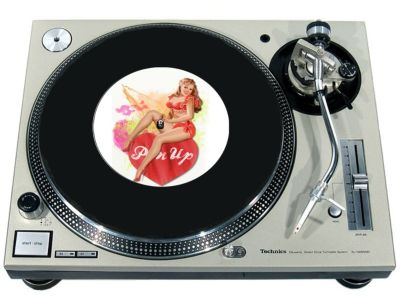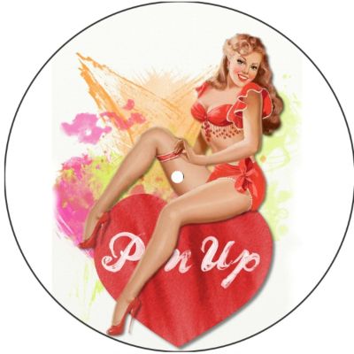 High quality felt turntable slipmat imprinted with an image of Pin Up Girl Heart. The mat is regular thickness (3/32" or 2mm) and is sized to fit any 7 inch turntable. It is anti static, has a glazed bottom to grip and avoid slippage, feels great and works well for scratching or just playing your records. The image is impregnated into the surface of the mat, so it cannot scratch off or damage the record.