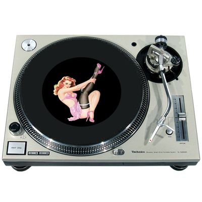 High quality felt turntable slipmat imprinted with an image of Pinup pink Dress. The mat is regular thickness (3/32" or 2mm) and is sized to fit any 7 inch turntable. It is anti static, has a glazed bottom to grip and avoid slippage, feels great and works well for scratching or just playing your records. The image is impregnated into the surface of the mat, so it cannot scratch off or damage the record.