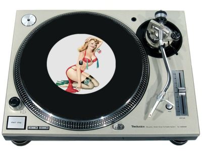 High quality felt turntable slipmat imprinted with an image of Pin-up Red Knealing Tassles & Rose. The mat is regular thickness (3/32" or 2mm) and is sized to fit any 7 inch turntable. It is anti static, has a glazed bottom to grip and avoid slippage, feels great and works well for scratching or just playing your records. The image is impregnated into the surface of the mat, so it cannot scratch off or damage the record.