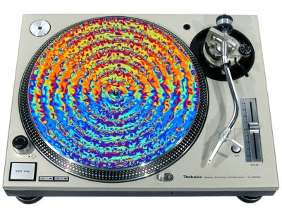 High quality felt turntable slipmat imprinted with an image of Psycho Ripples 2. The mat is regular thickness (3/32" or 2mm) and is sized to fit any 12 inch turntable. It is anti static, has a glazed bottom to grip and avoid slippage, feels great and works well for scratching or just playing your records. The image is impregnated into the surface of the mat, so it cannot scratch off or damage the record.
