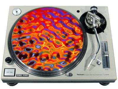 High quality felt turntable slipmat imprinted with an image of Psychoripples. The mat is regular thickness (3/32" or 2mm) and is sized to fit any 12 inch turntable. It is anti static, has a glazed bottom to grip and avoid slippage, feels great and works well for scratching or just playing your records. The image is impregnated into the surface of the mat, so it cannot scratch off or damage the record.