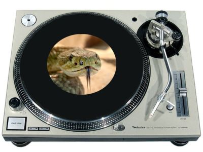 High quality felt turntable slipmat imprinted with an image of Rattle Snake 2. The mat is regular thickness (3/32" or 2mm) and is sized to fit any 7 inch turntable. It is anti static, has a glazed bottom to grip and avoid slippage, feels great and works well for scratching or just playing your records. The image is impregnated into the surface of the mat, so it cannot scratch off or damage the record.