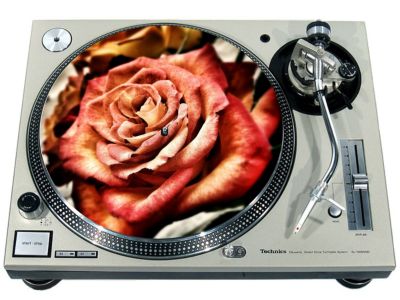 High quality felt turntable slipmat imprinted with an image of Rose 1. The mat is regular thickness (3/32" or 2mm) and is sized to fit any 12 inch turntable. It is anti static, has a glazed bottom to grip and avoid slippage, feels great and works well for scratching or just playing your records. The image is impregnated into the surface of the mat, so it cannot scratch off or damage the record.