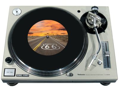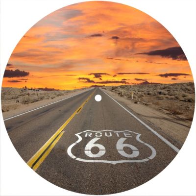High quality felt turntable slipmat imprinted with an image of Route 66 1. The mat is regular thickness (3/32" or 2mm) and is sized to fit any 7 inch turntable. It is anti static, has a glazed bottom to grip and avoid slippage, feels great and works well for scratching or just playing your records. The image is impregnated into the surface of the mat, so it cannot scratch off or damage the record.