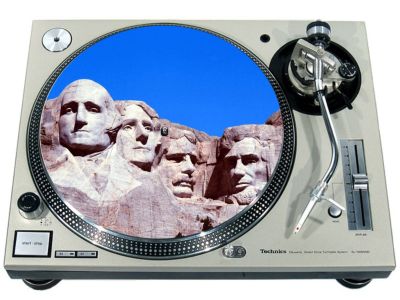 High quality felt turntable slipmat imprinted with an image of Rushmore. The mat is regular thickness (3/32" or 2mm) and is sized to fit any 12 inch turntable. It is anti static, has a glazed bottom to grip and avoid slippage, feels great and works well for scratching or just playing your records. The image is impregnated into the surface of the mat, so it cannot scratch off or damage the record.