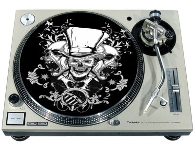 High quality felt turntable slipmat imprinted with an image of Top Hat Skull. The mat is regular thickness (3/32" or 2mm) and is sized to fit any 12 inch turntable. It is anti static, has a glazed bottom to grip and avoid slippage, feels great and works well for scratching or just playing your records. The image is impregnated into the surface of the mat, so it cannot scratch off or damage the record.