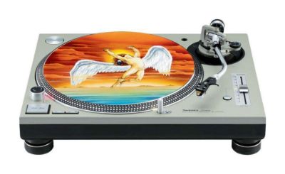 High quality felt turntable slipmat imprinted with an image of the Swan Song from Led Zeppelin's album. The mat is regular thickness (3/32" or 2mm) and is sized to fit any 12 inch turntable. It is anti static, has a glazed bottom to grip and avoid slippage, feels great and works well for scratching or just playing your records. The image is impregnated into the surface of the mat, so it cannot scratch off or damage the record.