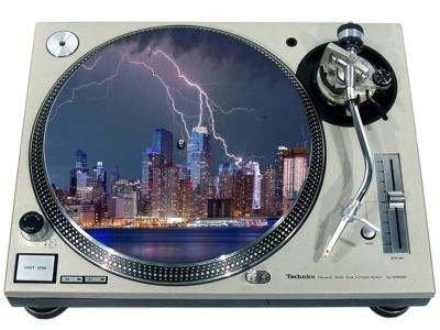 High quality felt turntable slipmat imprinted with an image of City New York Storm. The mat is regular thickness (3/32" or 2mm) and is sized to fit any 12 inch turntable. It is anti static, has a glazed bottom to grip and avoid slippage, feels great and works well for scratching or just playing your records. The image is impregnated into the surface of the mat, so it cannot scratch off or damage the record.
