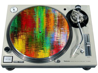 High quality felt turntable slipmat imprinted with an image of Colorful Interference. The mat is regular thickness (3/32" or 2mm) and is sized to fit any 12 inch turntable. It is anti static, has a glazed bottom to grip and avoid slippage, feels great and works well for scratching or just playing your records. The image is impregnated into the surface of the mat, so it cannot scratch off or damage the record.