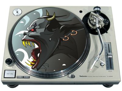 High quality felt turntable slipmat imprinted with an image of Demon 1. The mat is regular thickness (3/32" or 2mm) and is sized to fit any 12 inch turntable. It is anti static, has a glazed bottom to grip and avoid slippage, feels great and works well for scratching or just playing your records. The image is impregnated into the surface of the mat, so it cannot scratch off or damage the record.
