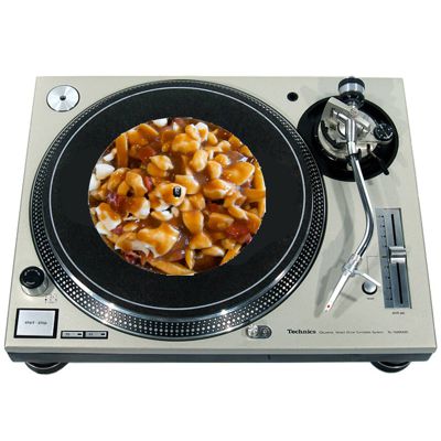 High quality felt turntable slipmat imprinted with an image of a poutine. The mat is regular thickness (3/32" or 2mm) and is sized to fit any 7 inch turntable. It is anti static, has a glazed bottom to grip and avoid slippage, feels great and works well for scratching or just playing your records. The image is impregnated into the surface of the mat, so it cannot scratch off or damage the record.