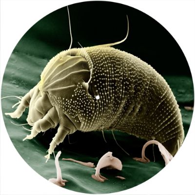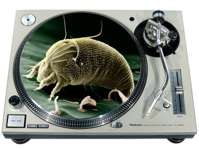 High quality felt turntable slipmat imprinted with an image of Microbe Mite. The mat is regular thickness (3/32" or 2mm) and is sized to fit any 12 inch turntable. It is anti static, has a glazed bottom to grip and avoid slippage, feels great and works well for scratching or just playing your records. The image is impregnated into the surface of the mat, so it cannot scratch off or damage the record.