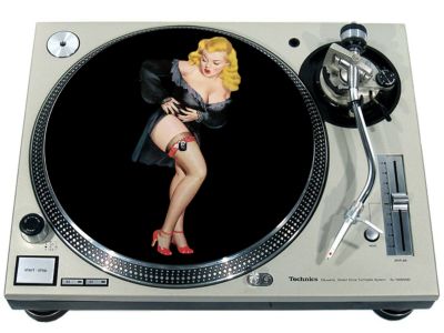 High quality felt turntable slipmat imprinted with an image of Pinup Black Negligee. The mat is regular thickness (3/32" or 2mm) and is sized to fit any 12 inch turntable. It is anti static, has a glazed bottom to grip and avoid slippage, feels great and works well for scratching or just playing your records. The image is impregnated into the surface of the mat, so it cannot scratch off or damage the record.