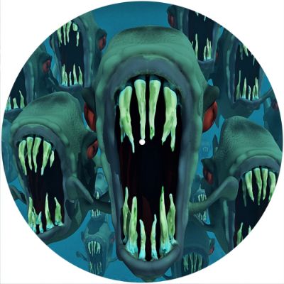 High quality felt turntable slipmat imprinted with an image of Piranhas. The mat is regular thickness (3/32" or 2mm) and is sized to fit any 12 inch turntable. It is anti static, has a glazed bottom to grip and avoid slippage, feels great and works well for scratching or just playing your records. The image is impregnated into the surface of the mat, so it cannot scratch off or damage the record.